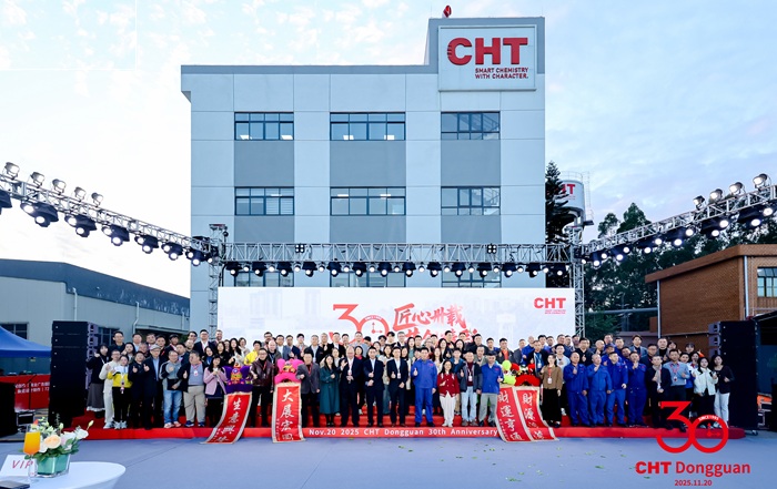 Established in 1995, CHT Dongguan is strategically located in the heart of the Greater Bay Area, with convenient access to Guangzhou and Shenzhen (both within a 1-hour drive). Spanning 24,400 m2, the facility integrates production lines, warehousing, an advanced application lab, and office spaces, supported by a team of 54 employees. Following a major production line upgrade in 2017, the factory now boasts an annual capacity of 9,000 MT, ensuring reliable and scalable supply. As the Dongguan factory celebrates its 30th anniversary, it has also taken on a brand-new look and exudes vigorous vitality.