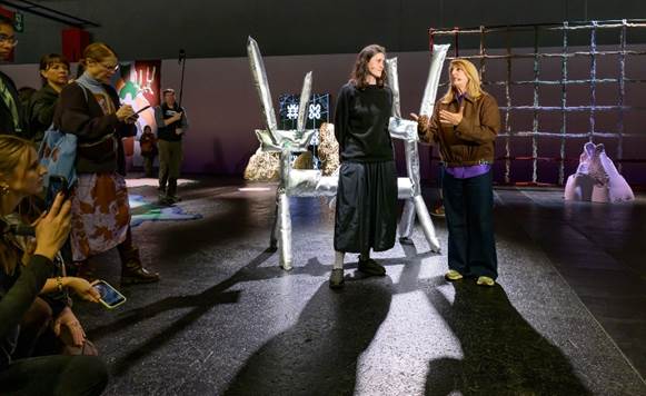 At the opening press conference, designer and architect Patricia Urquiola presents her new design installation ‘among-all’. In conversation with Rosa Bertoli, Global Design Director of Wallpaper magazine, she explains which materials, designs and technologies are shaping the future of interior design. Patricia Urquiola has developed an immersive design world exclusively for Heimtextil. It illustrates the interior design of tomorrow for visitors – with futuristic spacial elements such as hybrid sculptures, inflated figures and hanging grid structures. Visitors are invited to actively shape the space. Their movements become part of the staging through AI. Patricia Urquiola shows how textiles function as transformative and intelligent materials. They form an interface between people, materials and machines.