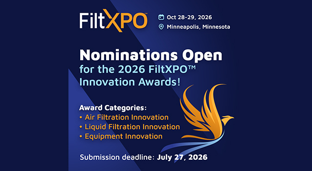 Innovation Awards to be presented October 28 at FiltXPO 2026 in Minneapolis, Minnesota.